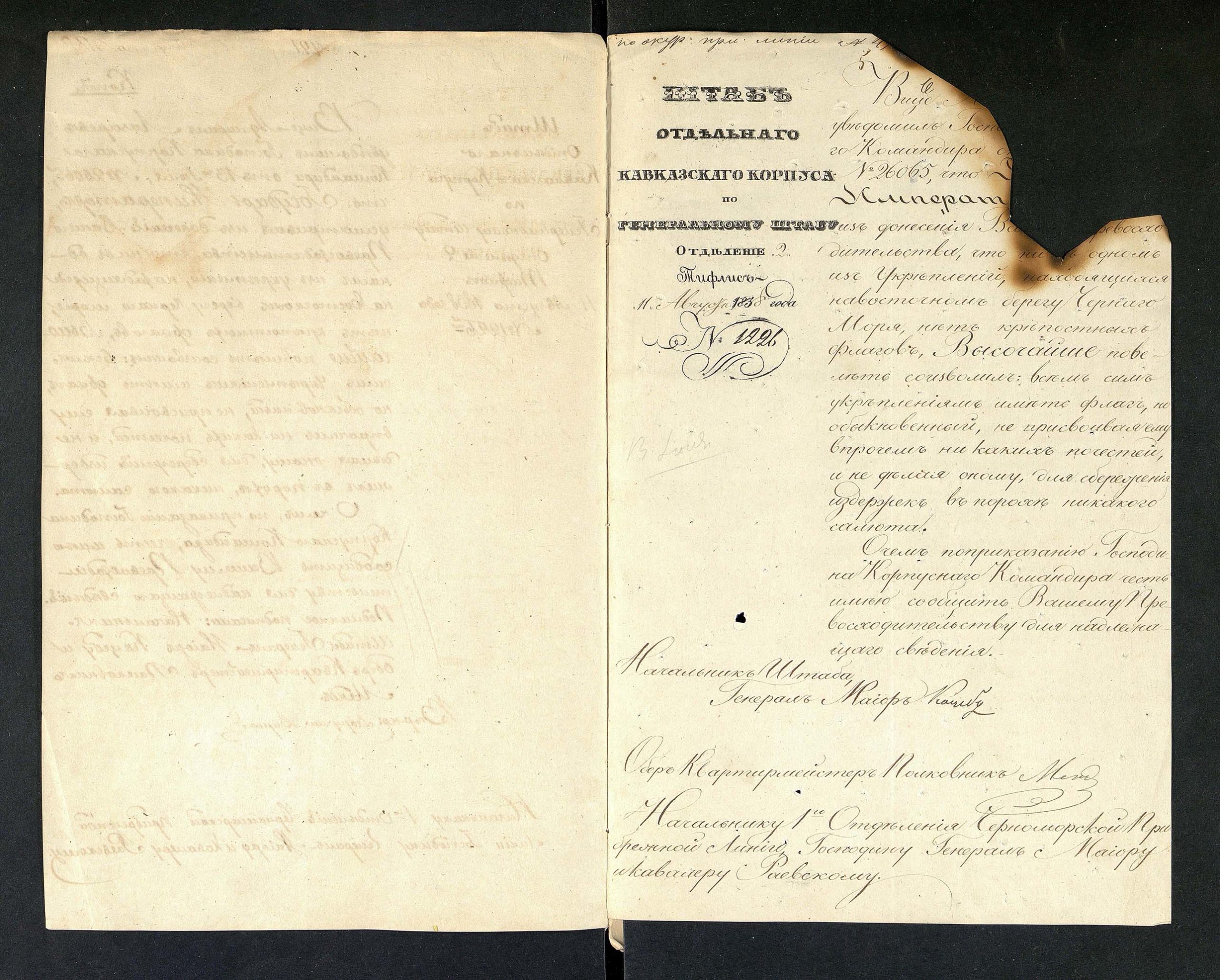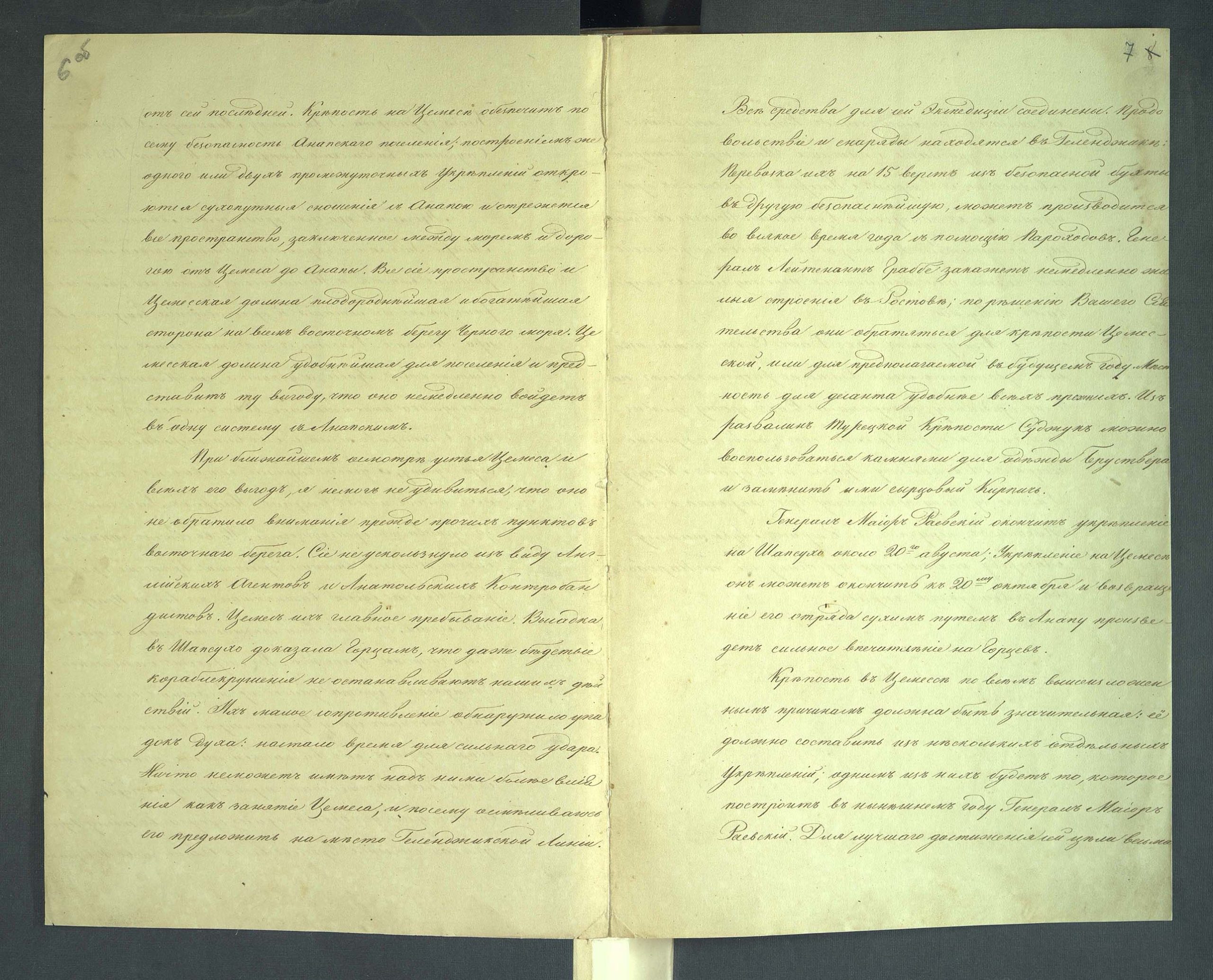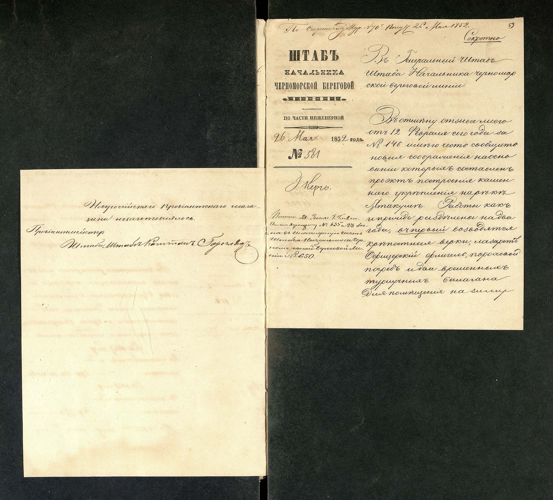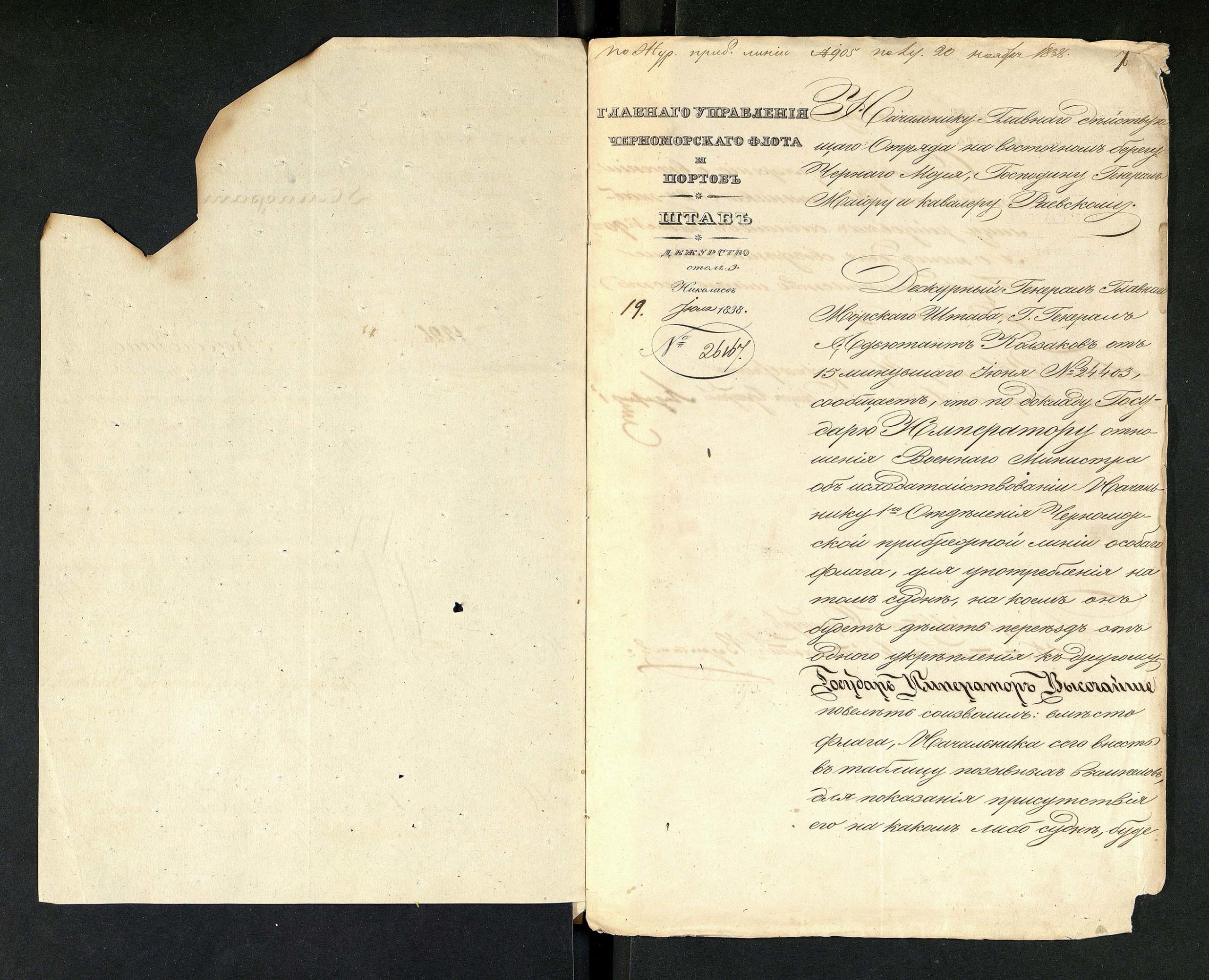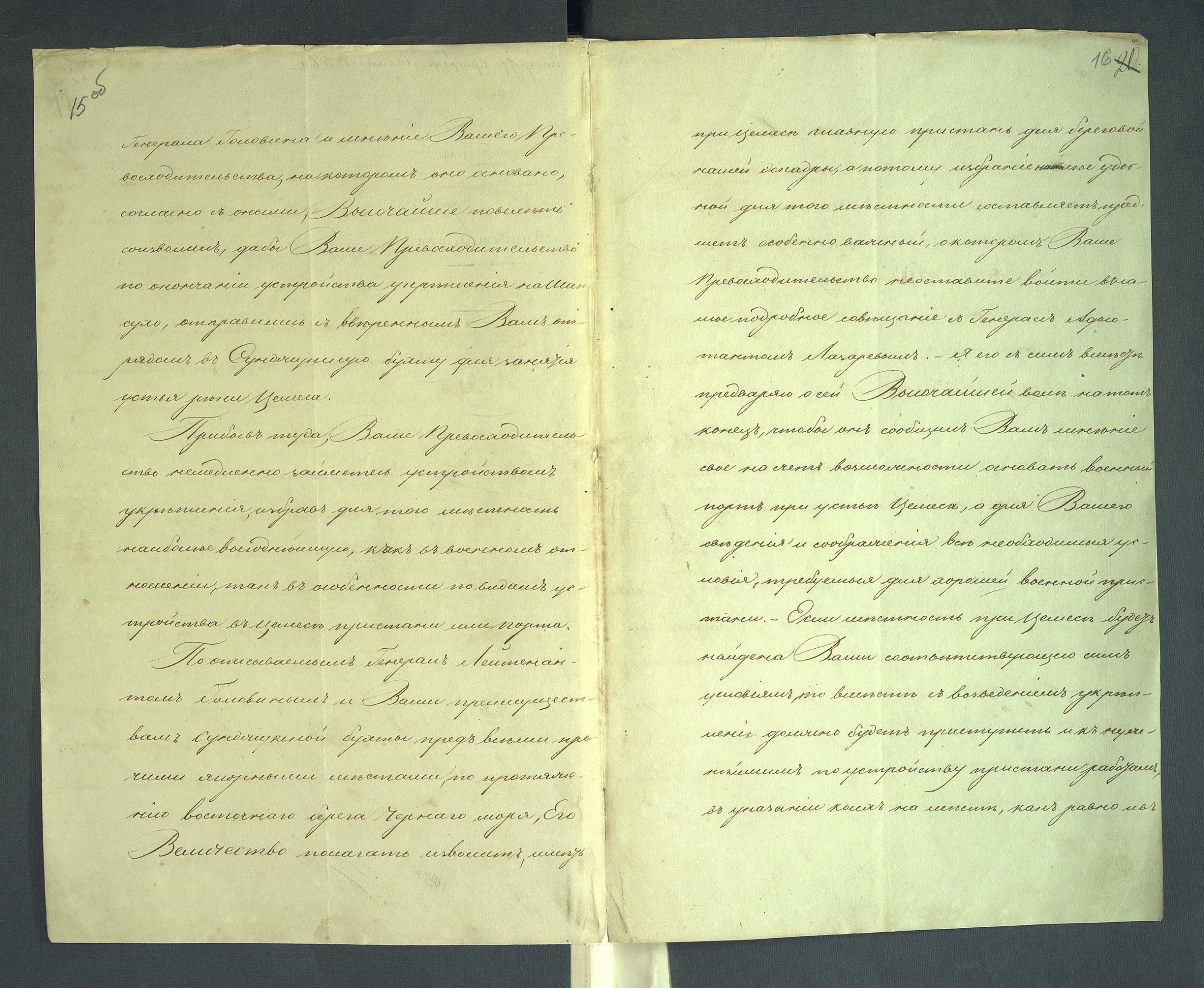 Документы ГКУ КК «Государственный архив Краснодарского края», фонда № 260 «Канцелярии начальника Черноморской береговой линии», опись № 1, оцифрованное дело № 17 «О занятии устья реки Цемеса в Суджукской бухте под устройство там Адмиралтейства и пристани», за 1838-1844 гг. — Письмо