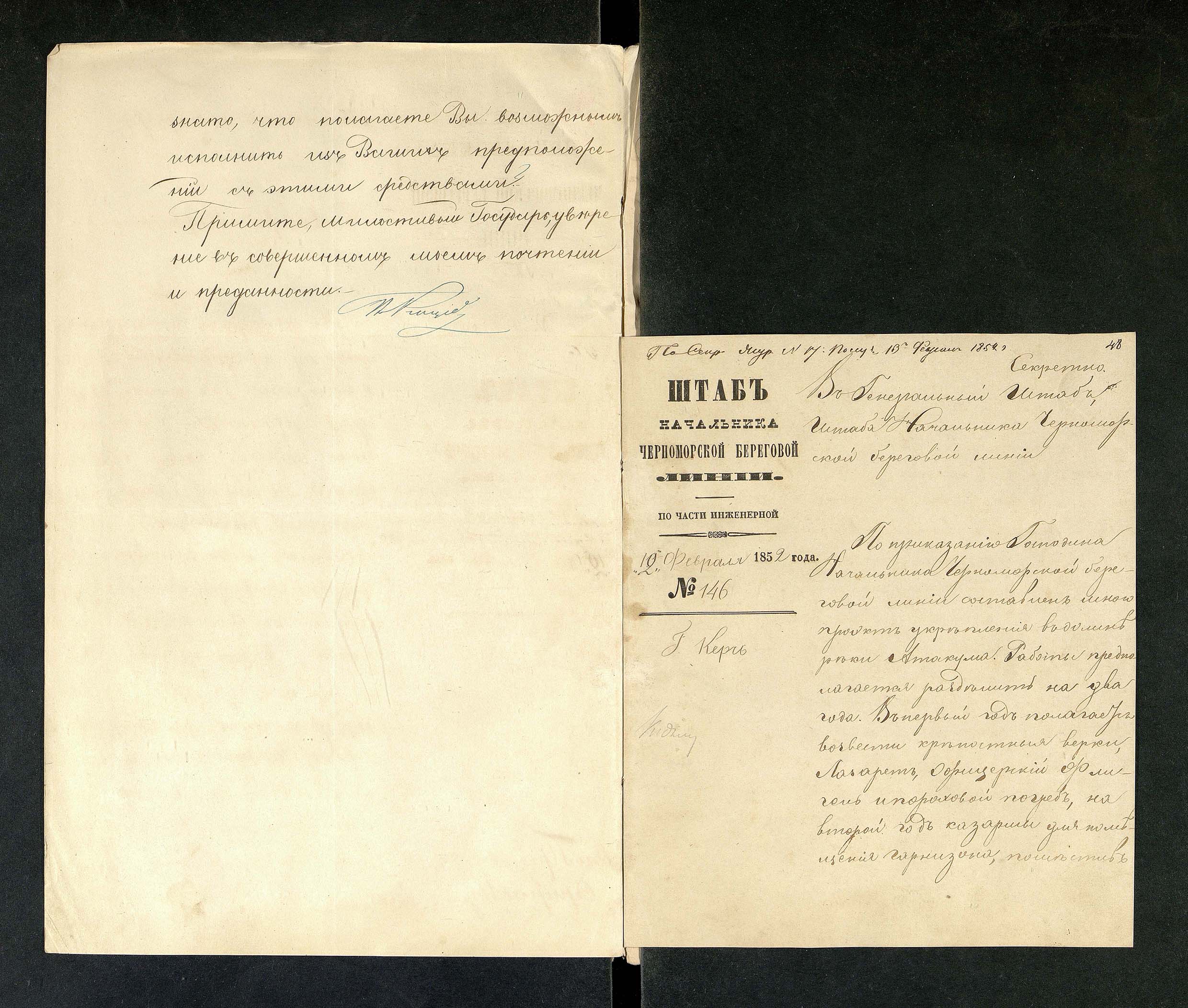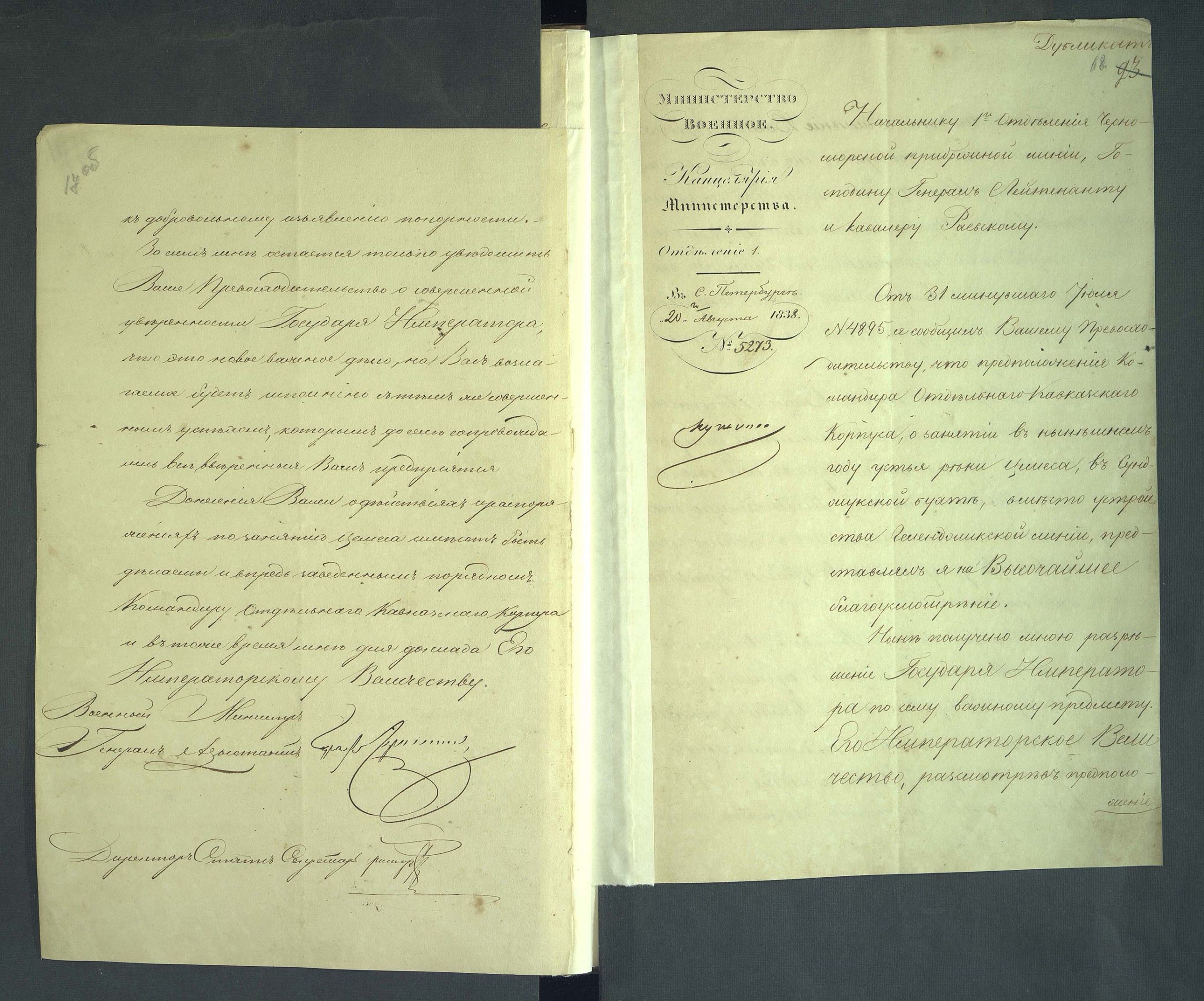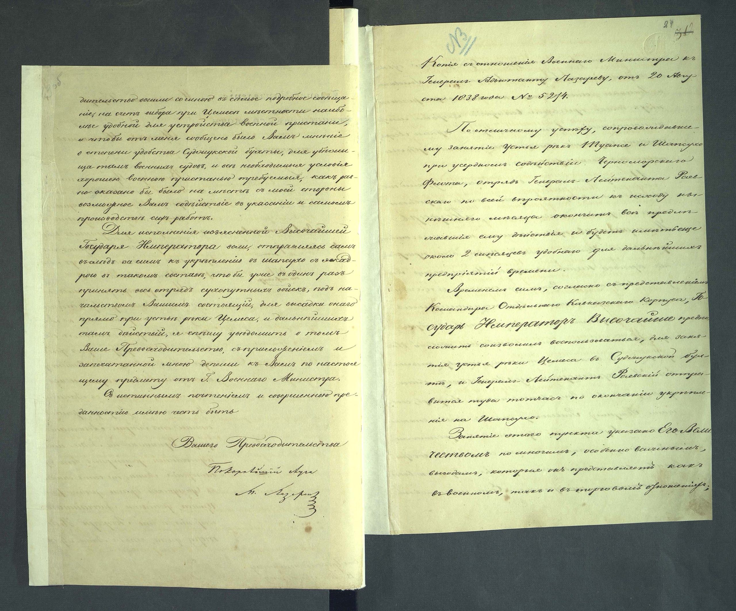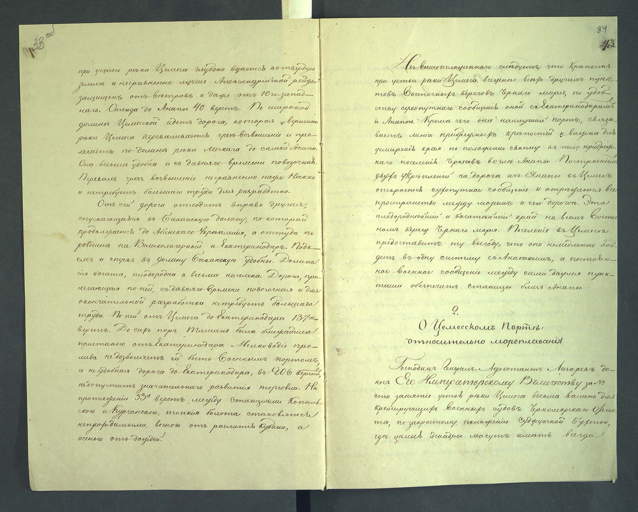 Документы ГКУ КК «Государственный архив Краснодарского края», фонда № 260 «Канцелярии начальника Черноморской береговой линии», опись № 1, оцифрованное дело № 17 «О занятии устья реки Цемеса в Суджукской бухте под устройство там Адмиралтейства и пристани», за 1838-1844 гг. — Письмо