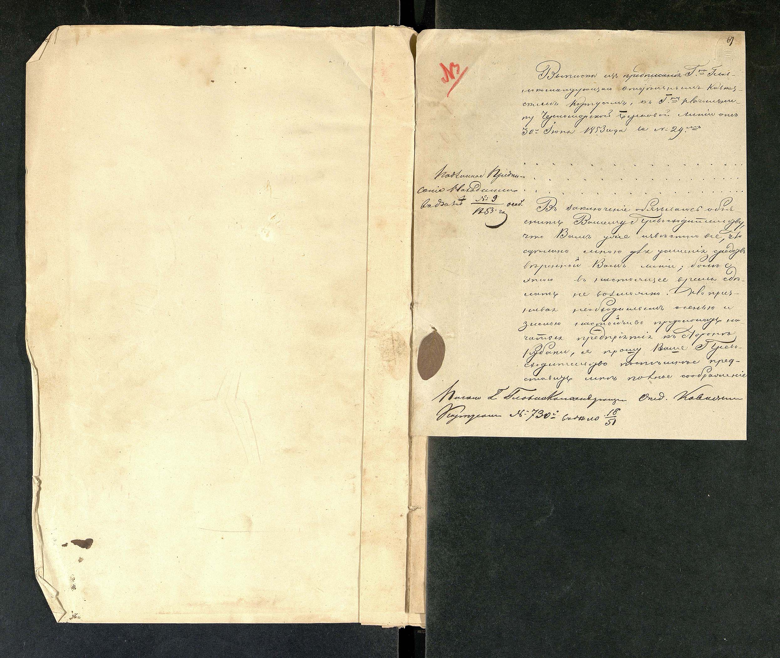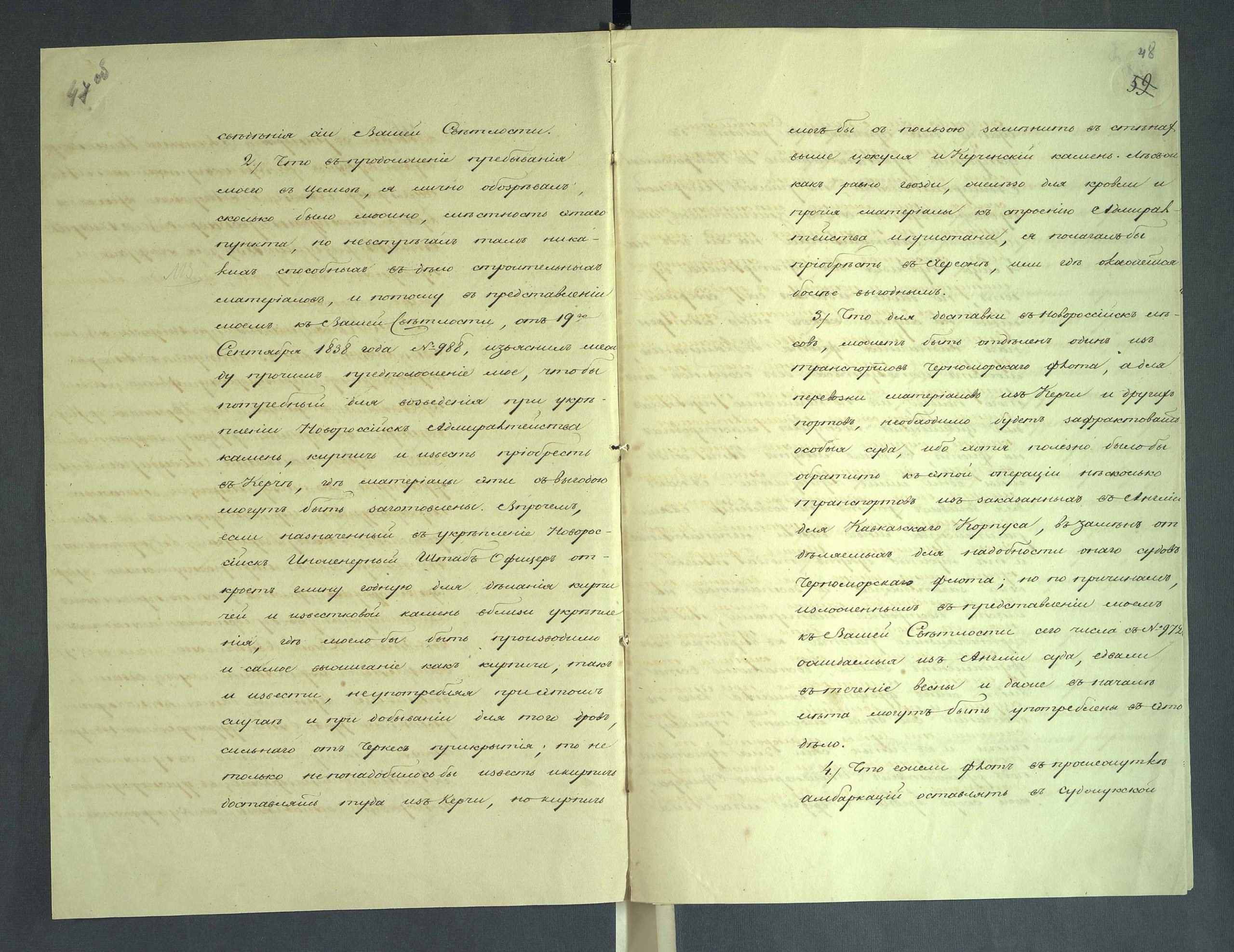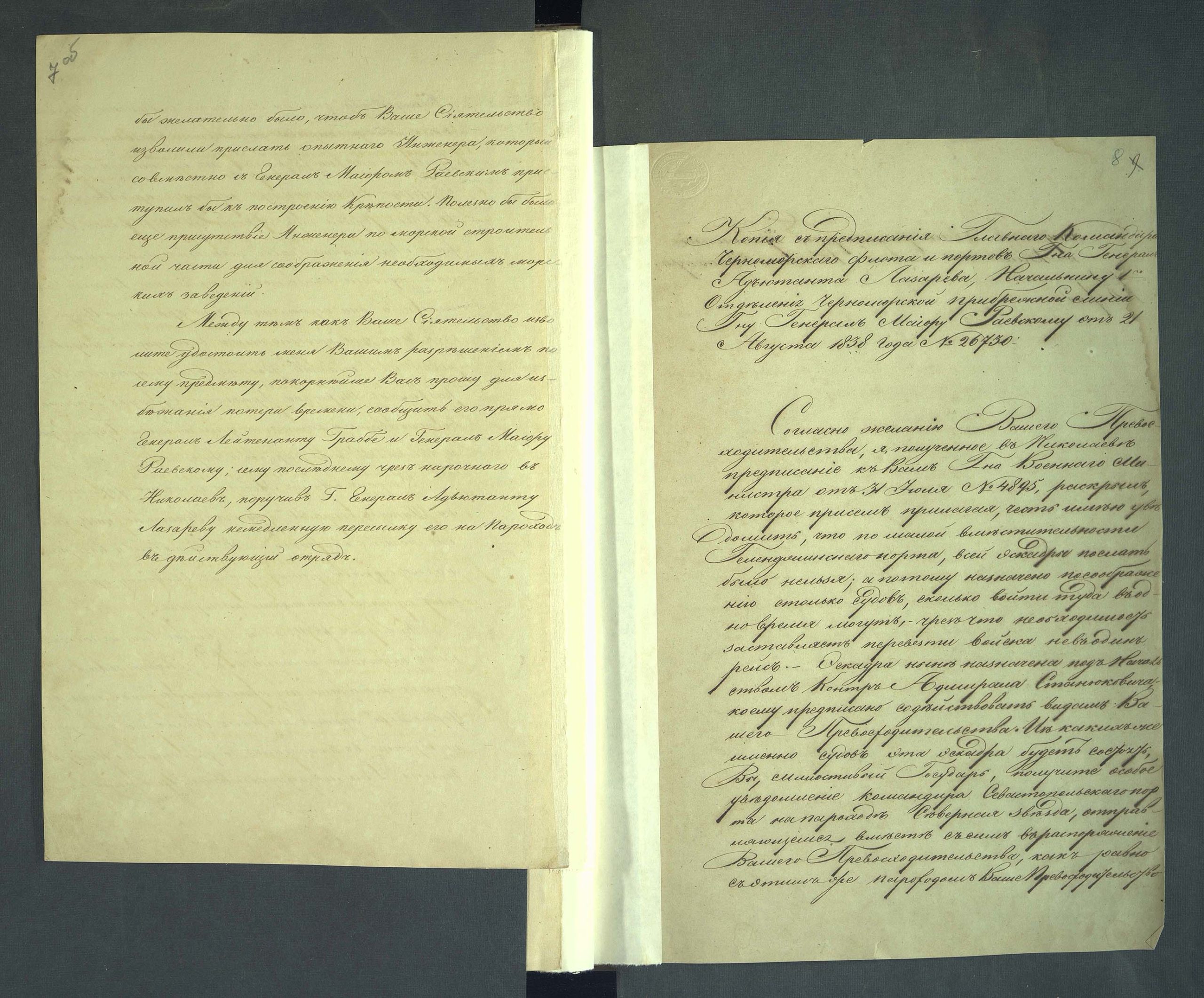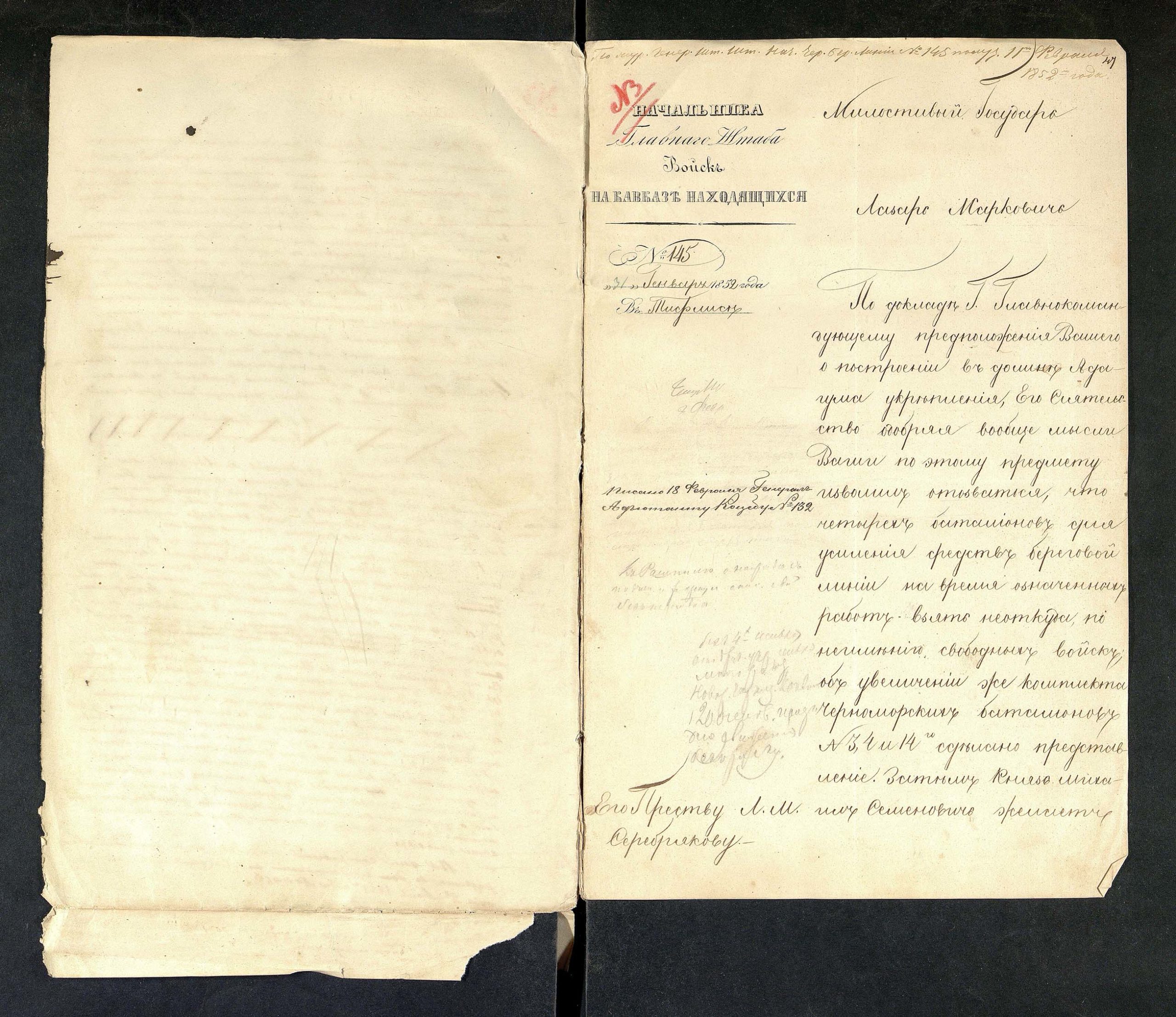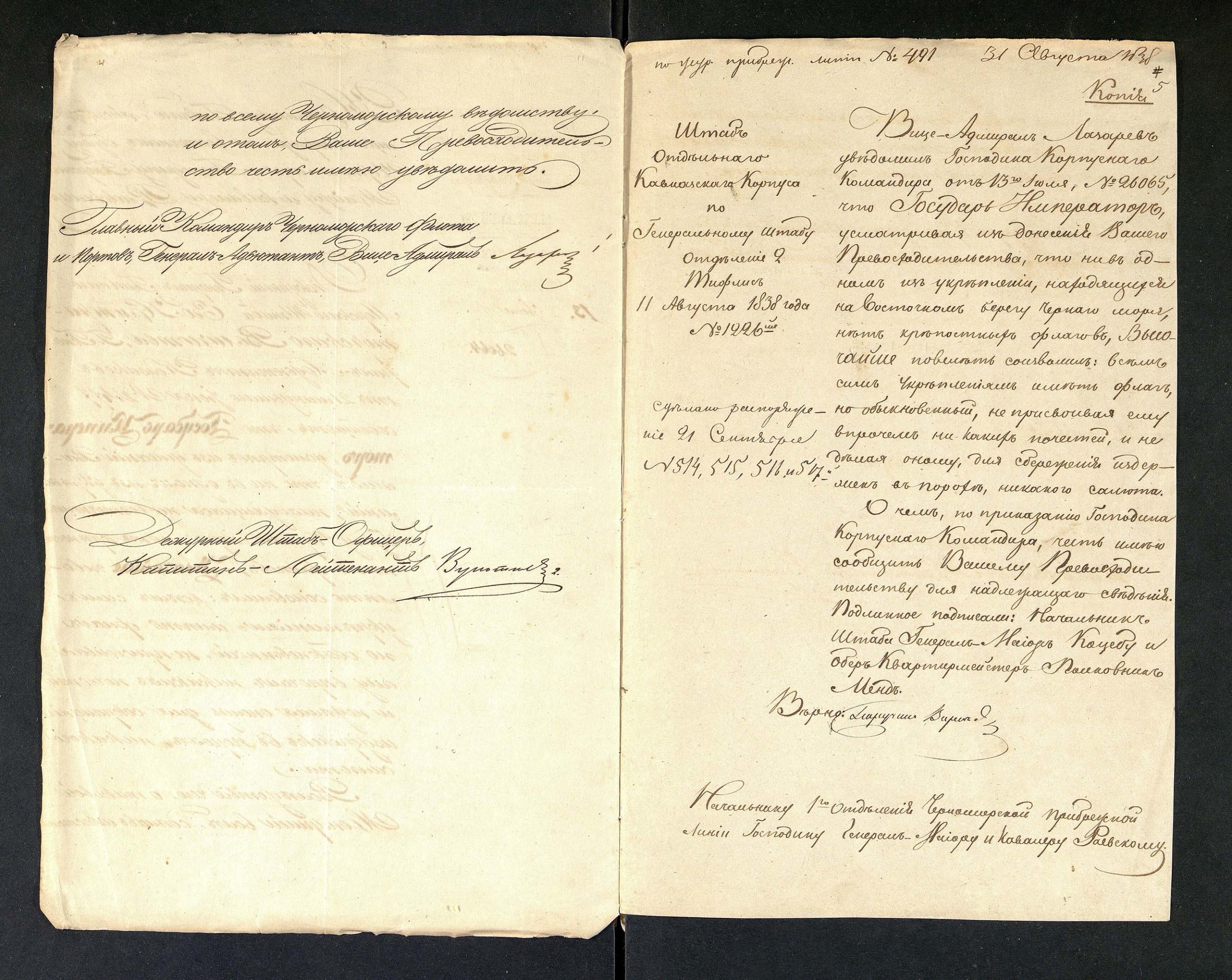 Документы ГКУ КК «Государственный архив Краснодарского края», фонда № 260 «Канцелярии начальника Черноморской береговой линии», опись № 1, оцифрованное дело № 17 «О занятии устья реки Цемеса в Суджукской бухте под устройство там Адмиралтейства и пристани», за 1838-1844 гг. — Письмо