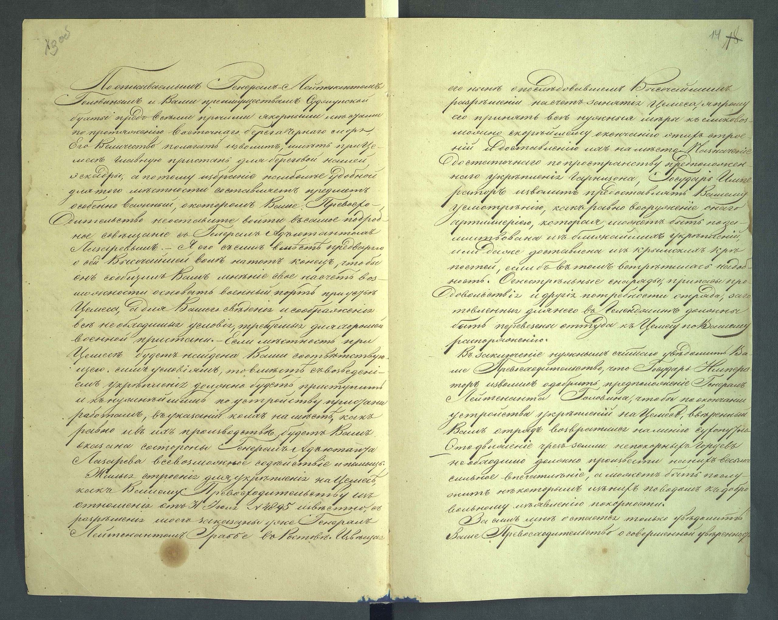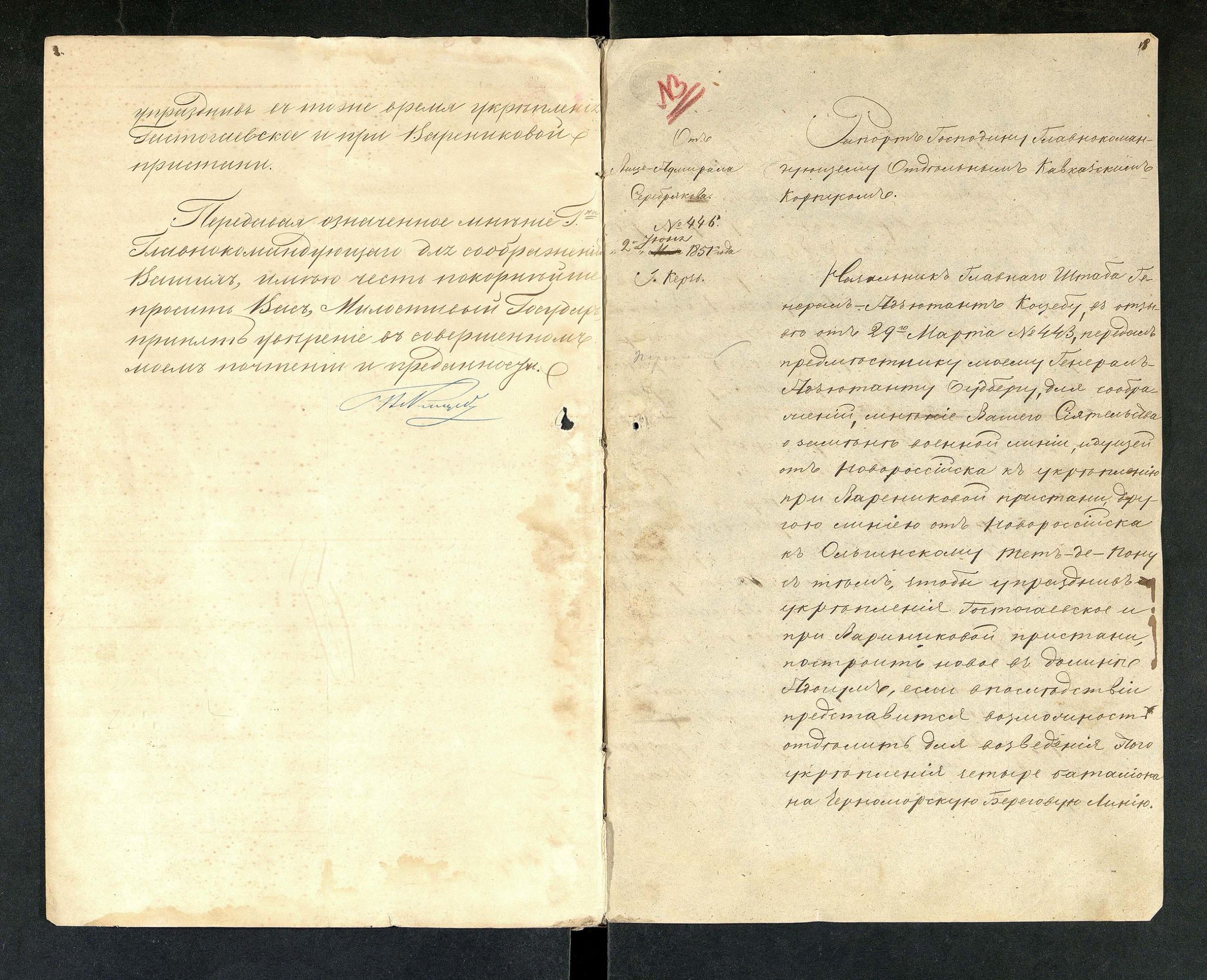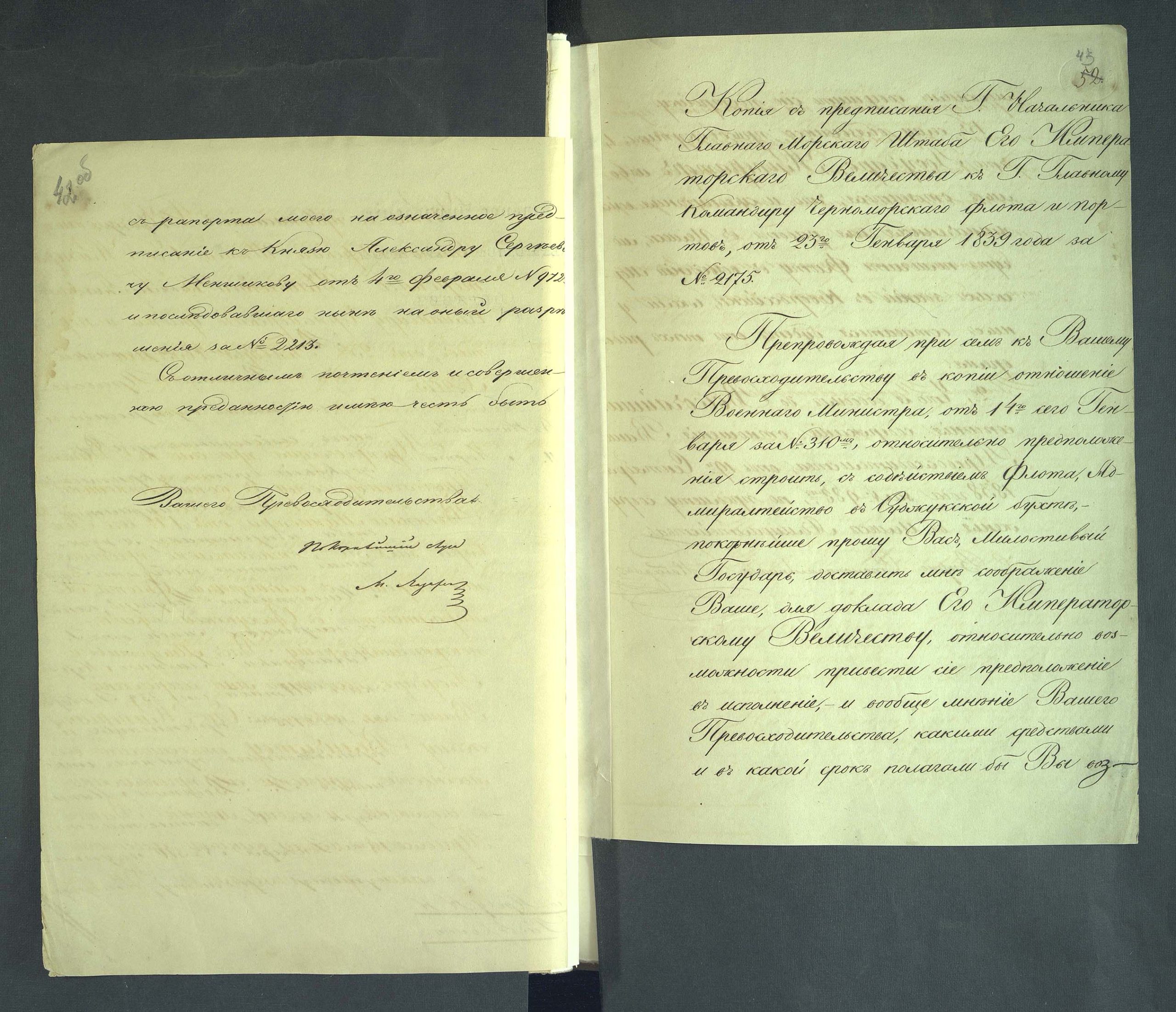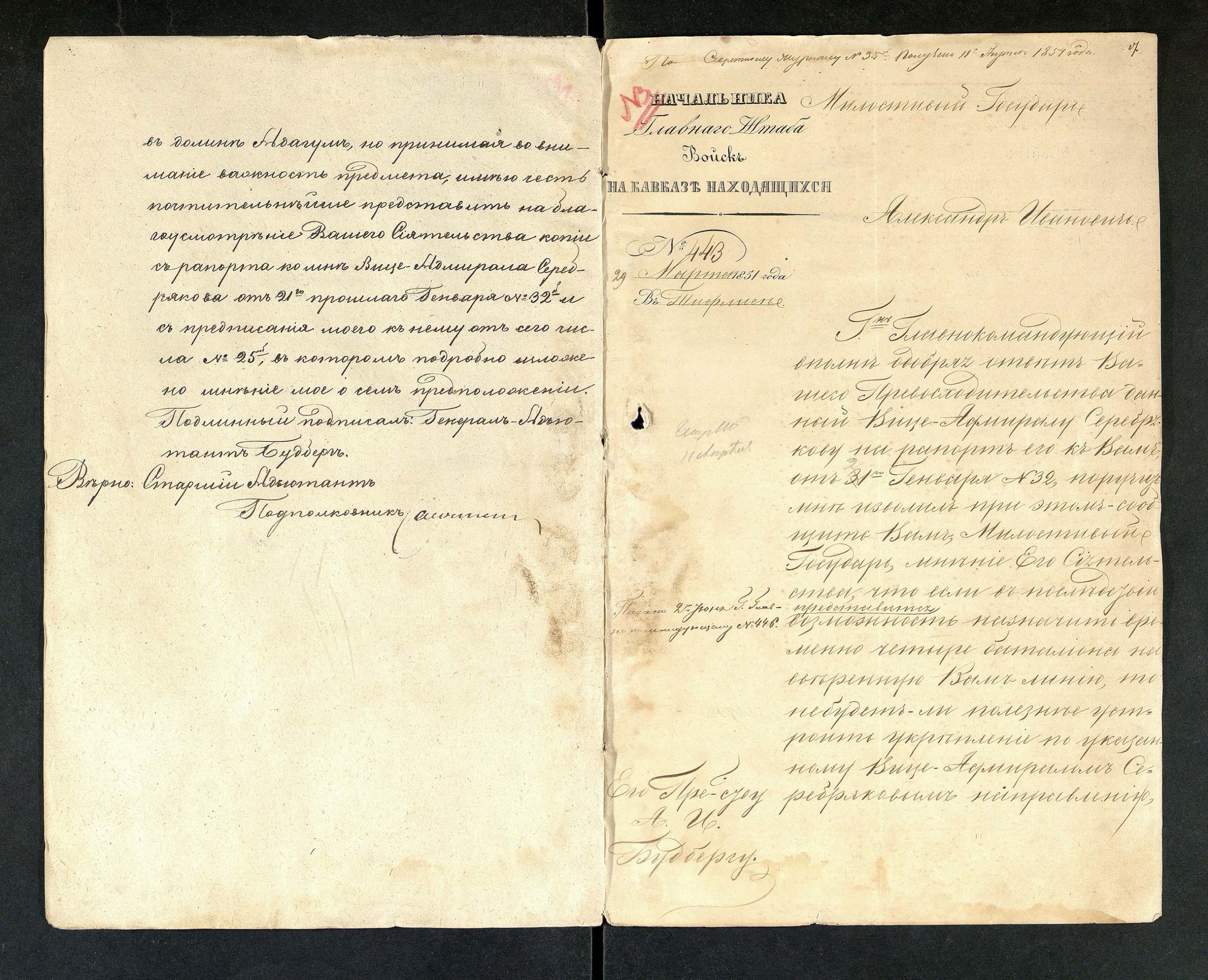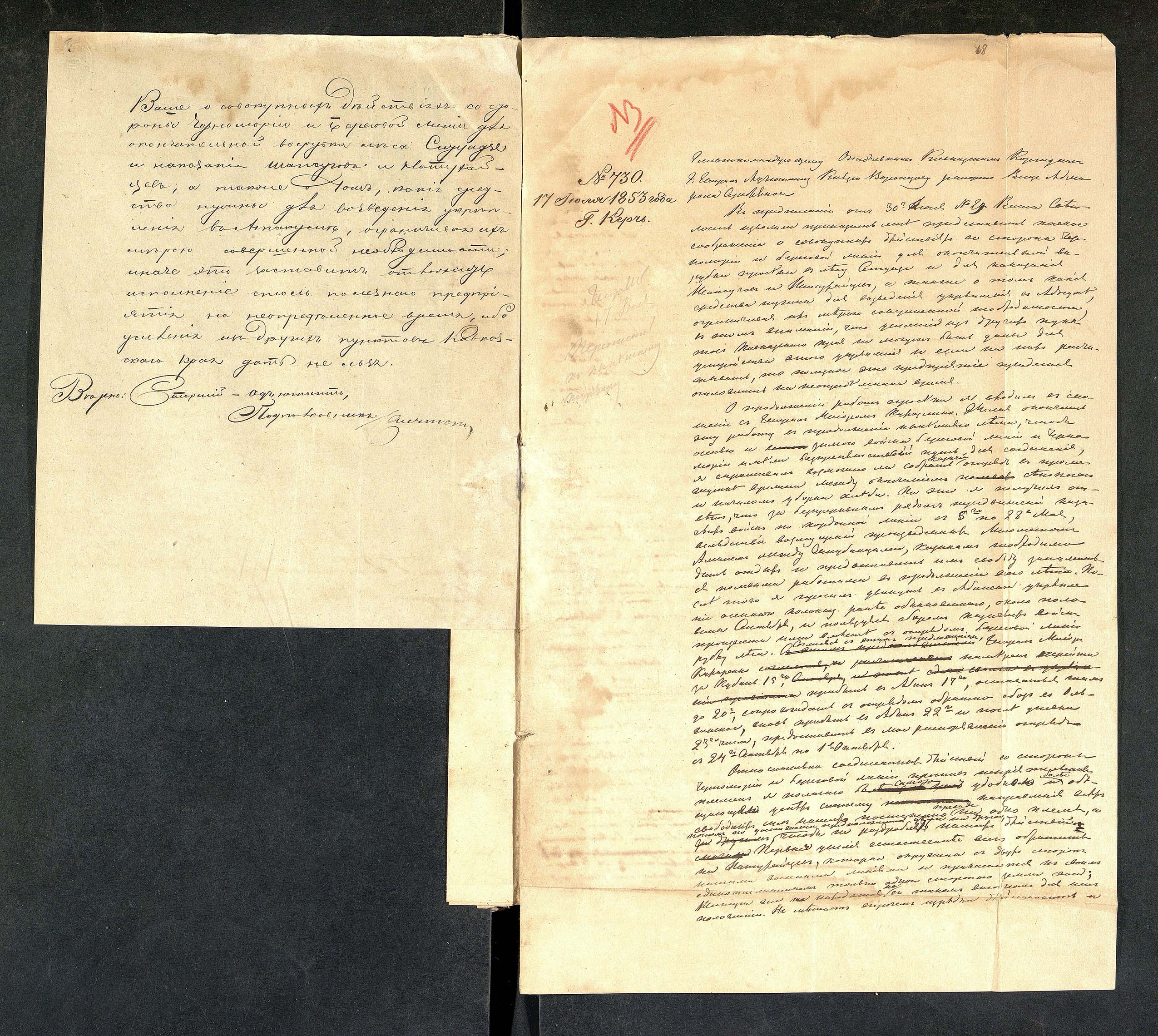 Документы ГКУ КК «Государственный архив Краснодарского края», фонда № 260 «Канцелярии начальника Черноморской береговой линии», опись № 1, оцифрованное дело № 17 «О занятии устья реки Цемеса в Суджукской бухте под устройство там Адмиралтейства и пристани», за 1838-1844 гг. — Письмо