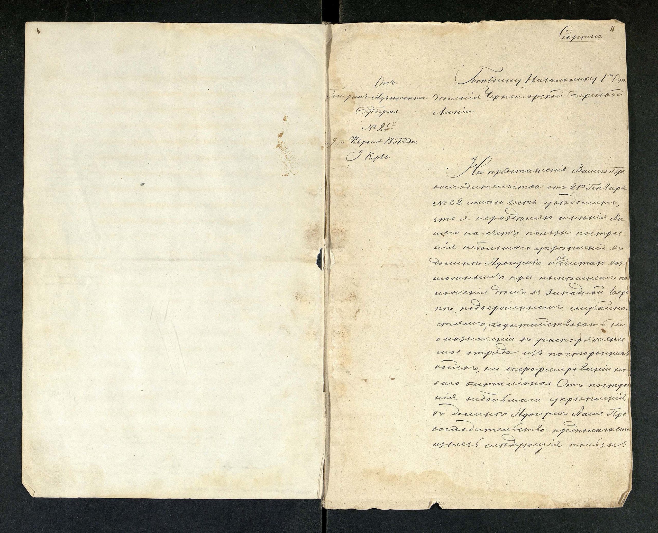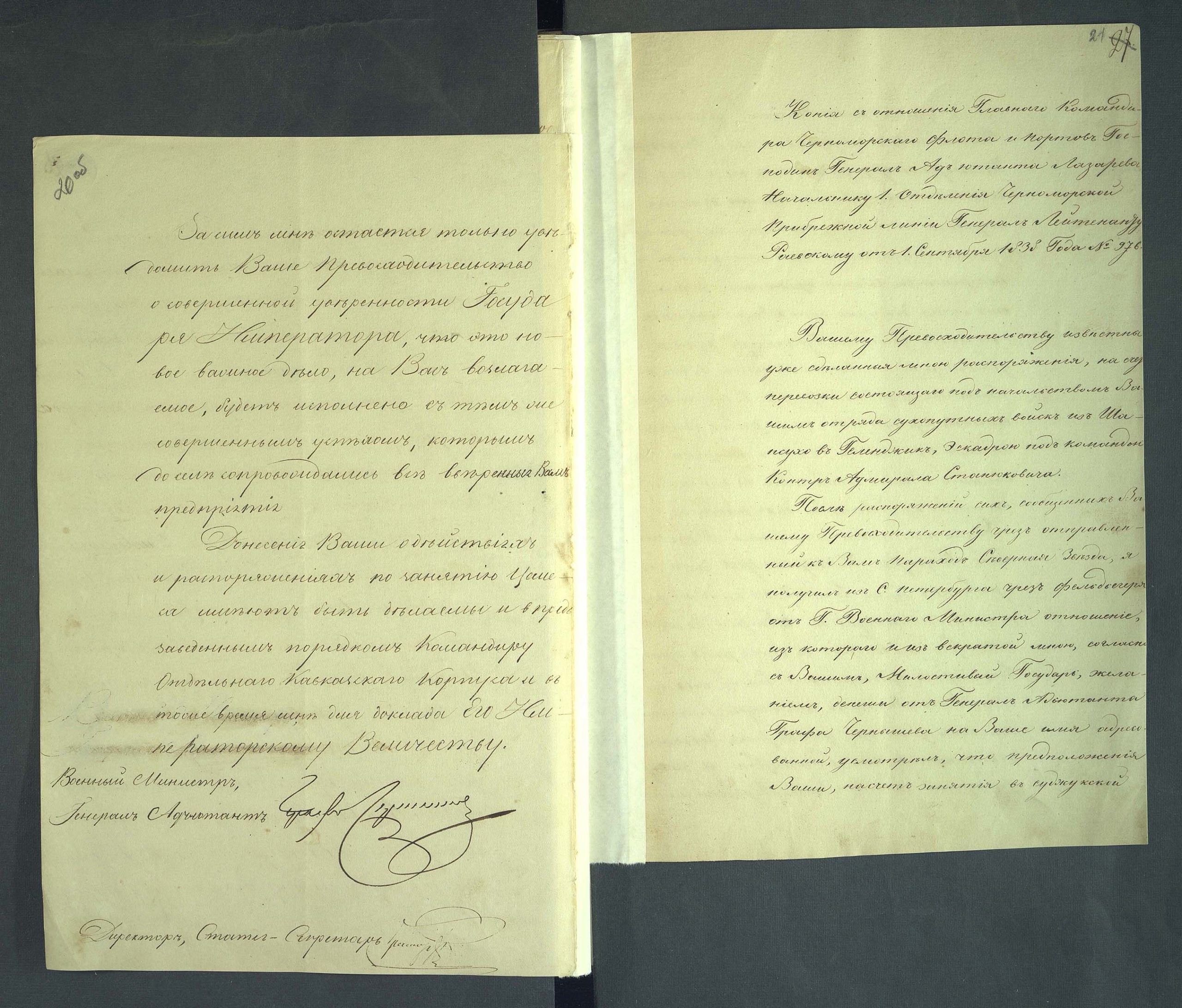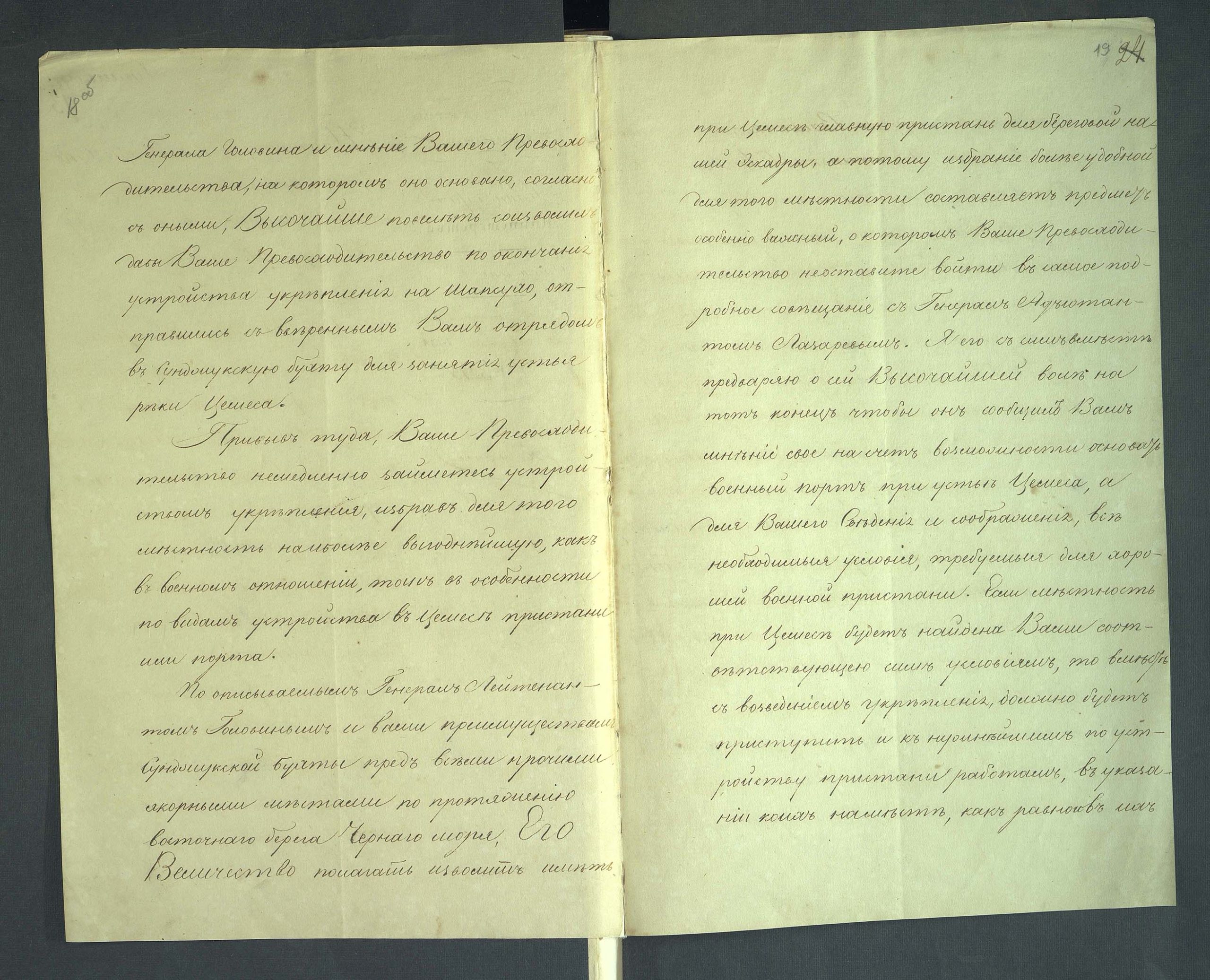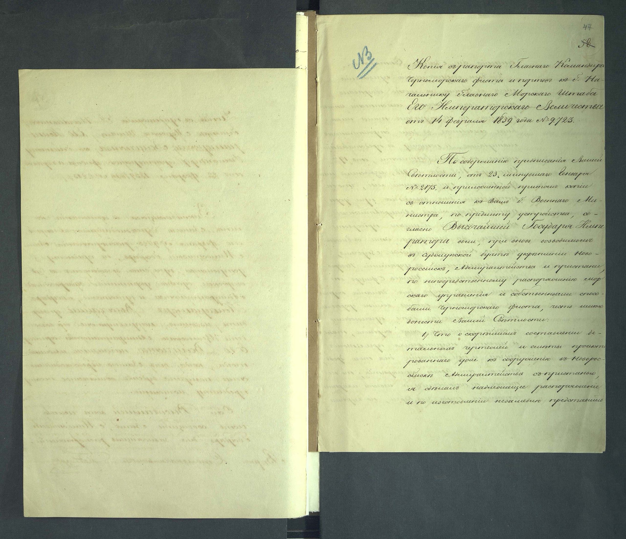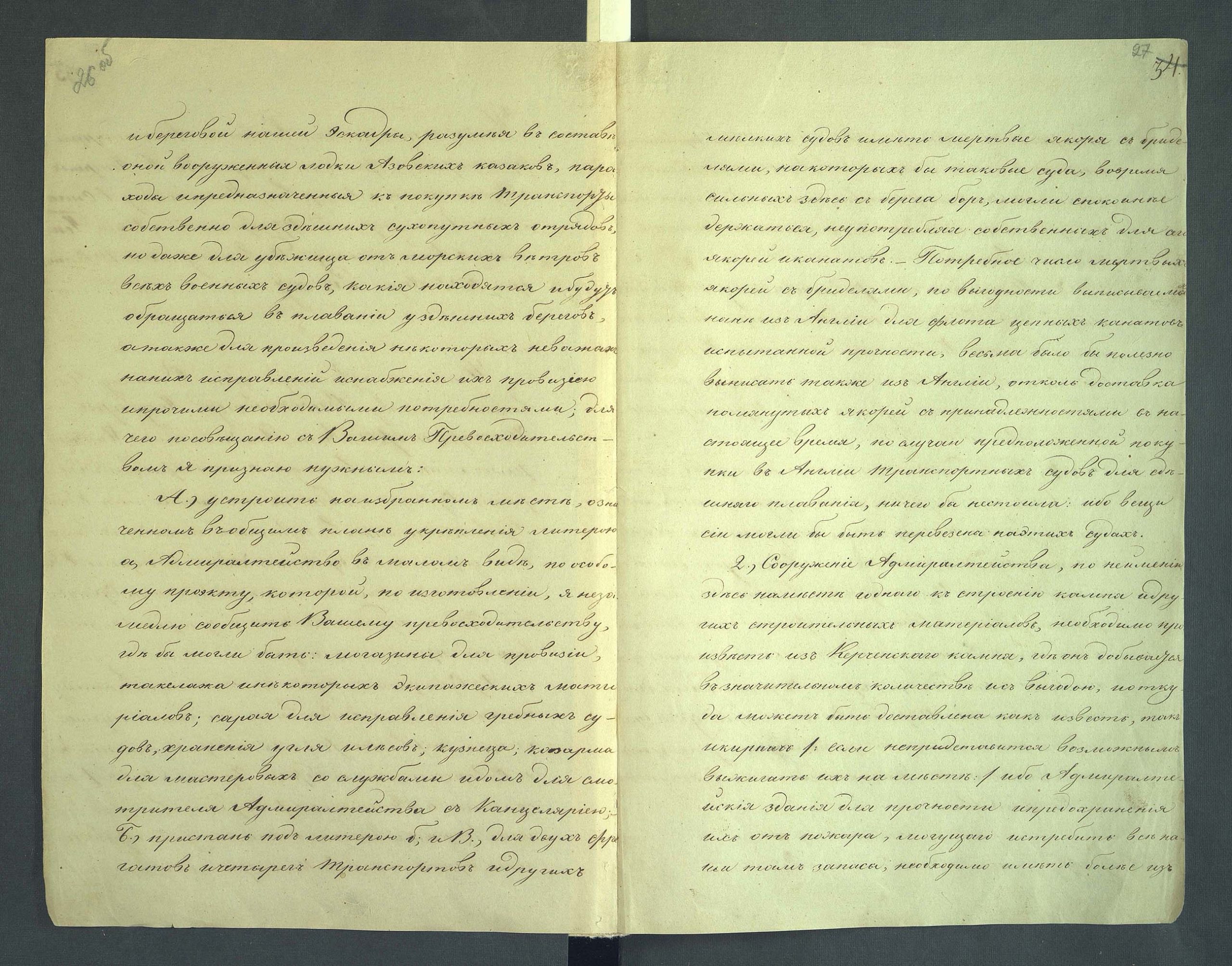Документы ГКУ КК «Государственный архив Краснодарского края», фонда № 260 «Канцелярии начальника Черноморской береговой линии», опись № 1, оцифрованное дело № 17 «О занятии устья реки Цемеса в Суджукской бухте под устройство там Адмиралтейства и пристани», за 1838-1844 гг. — Письмо