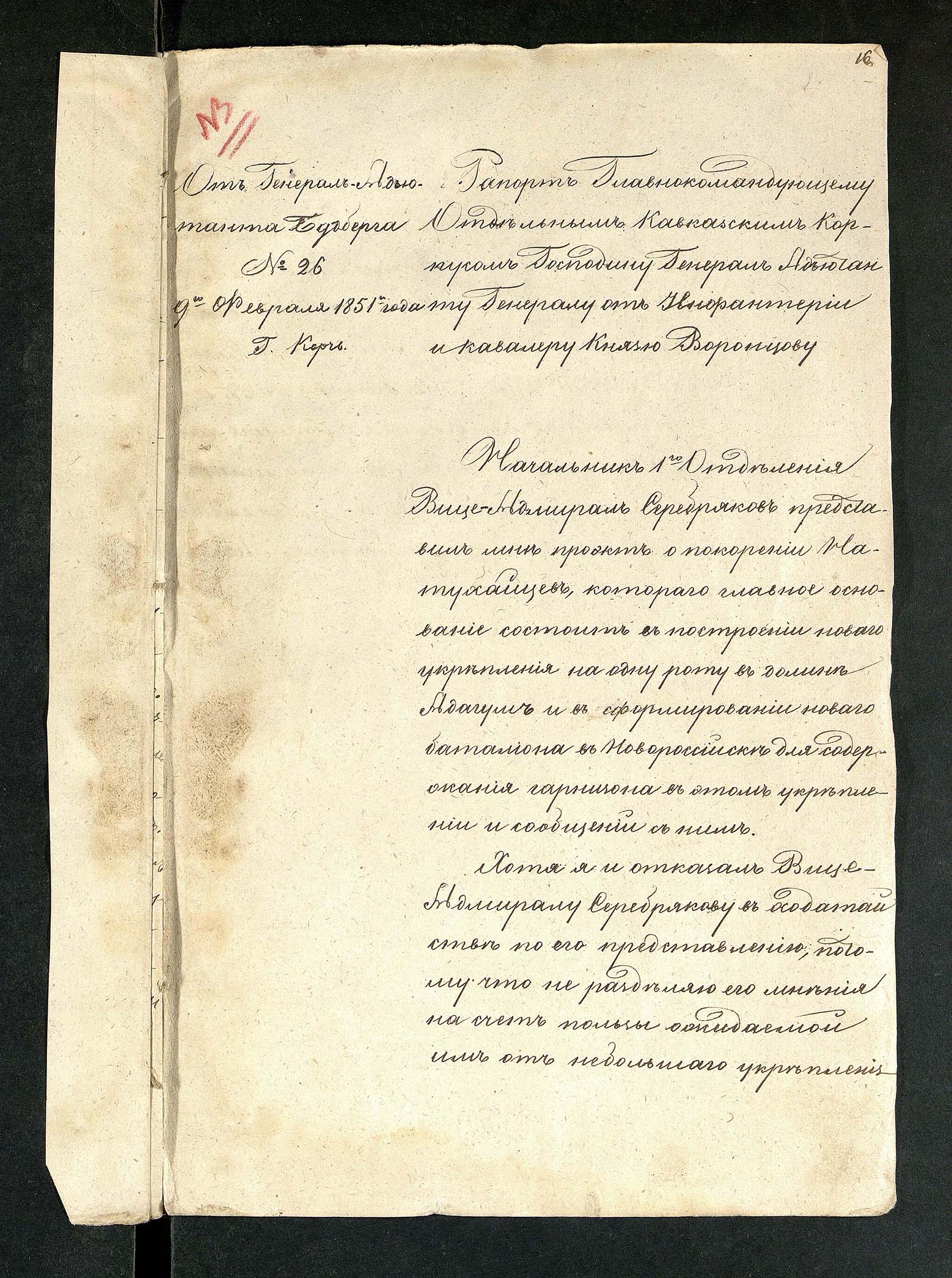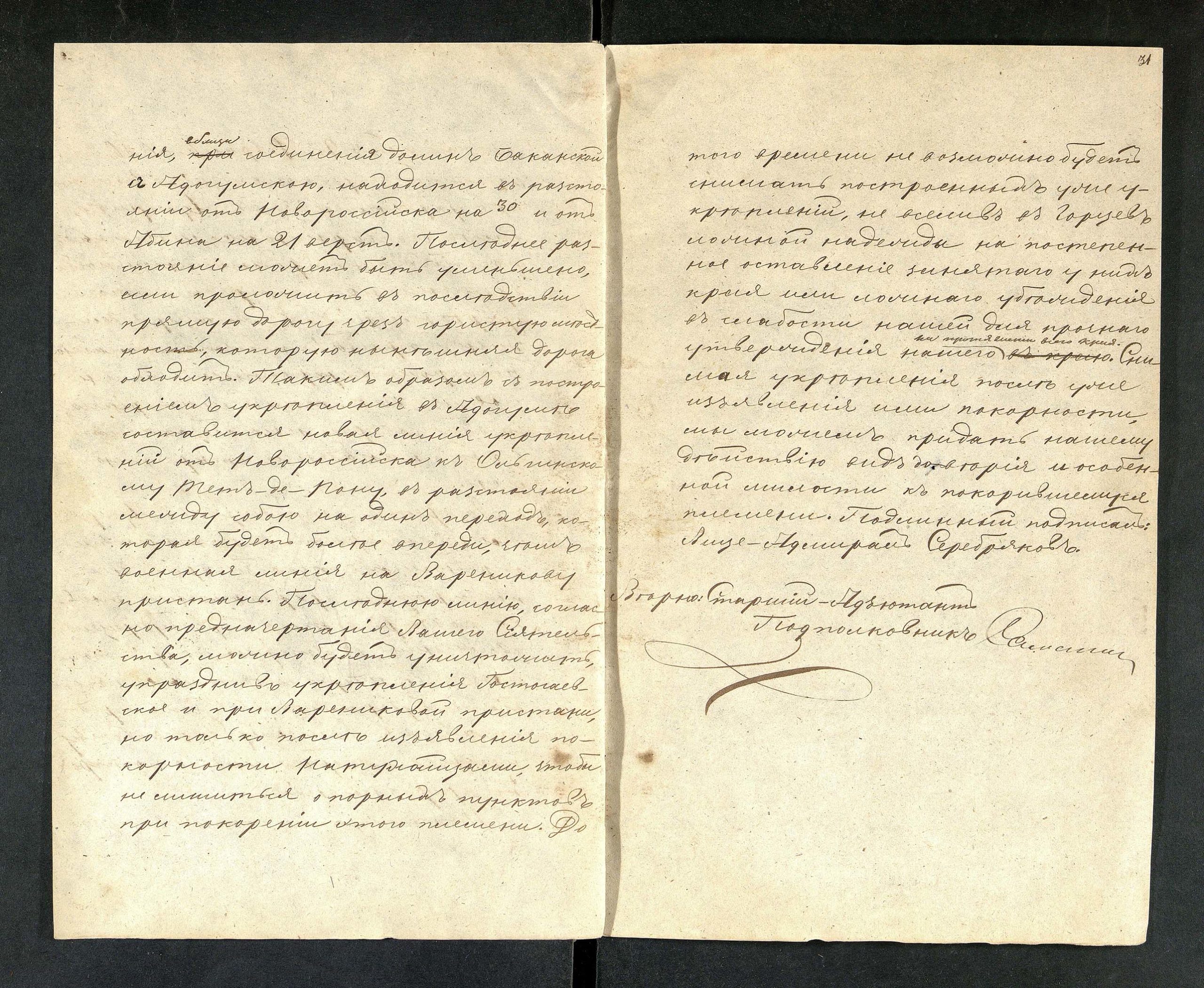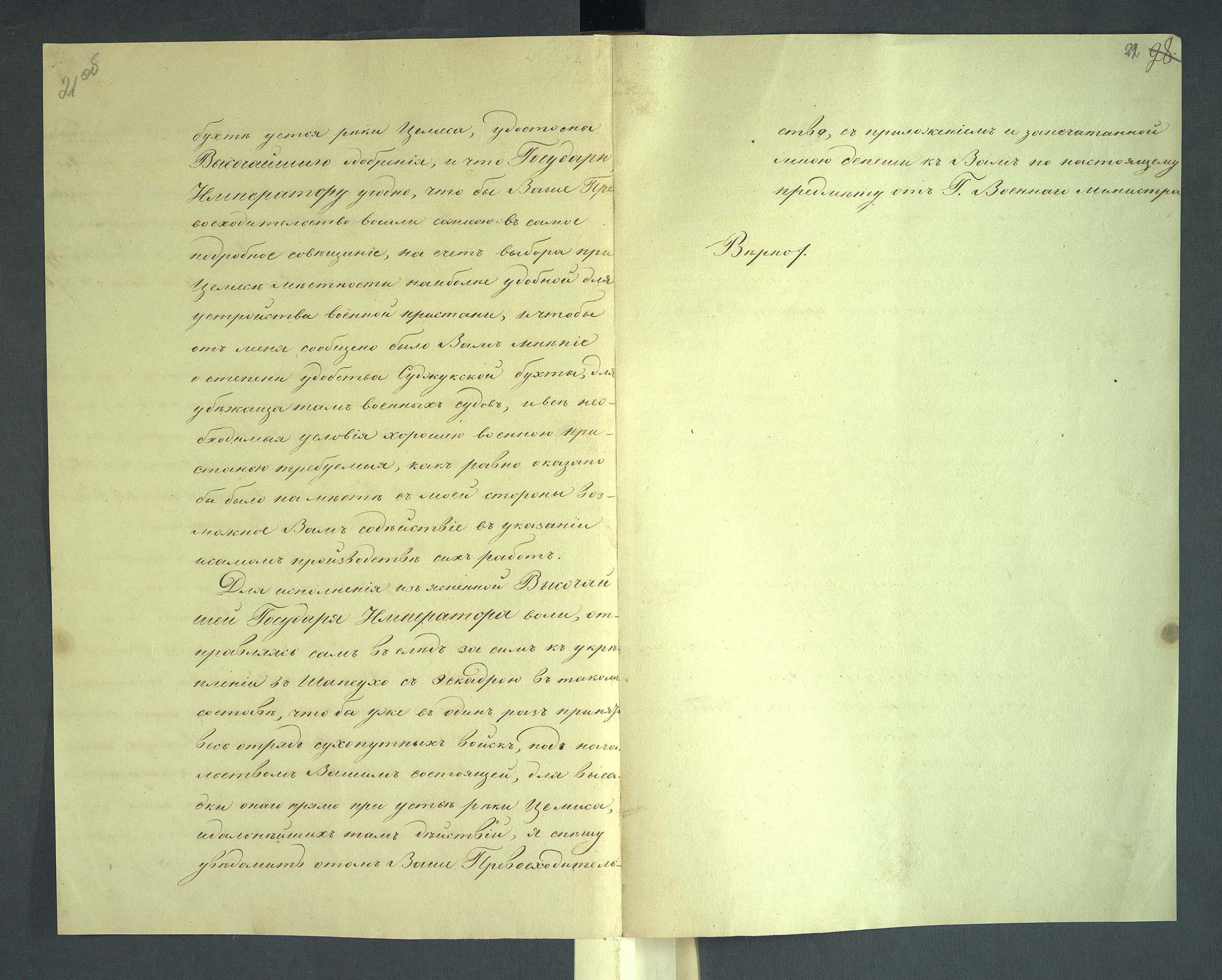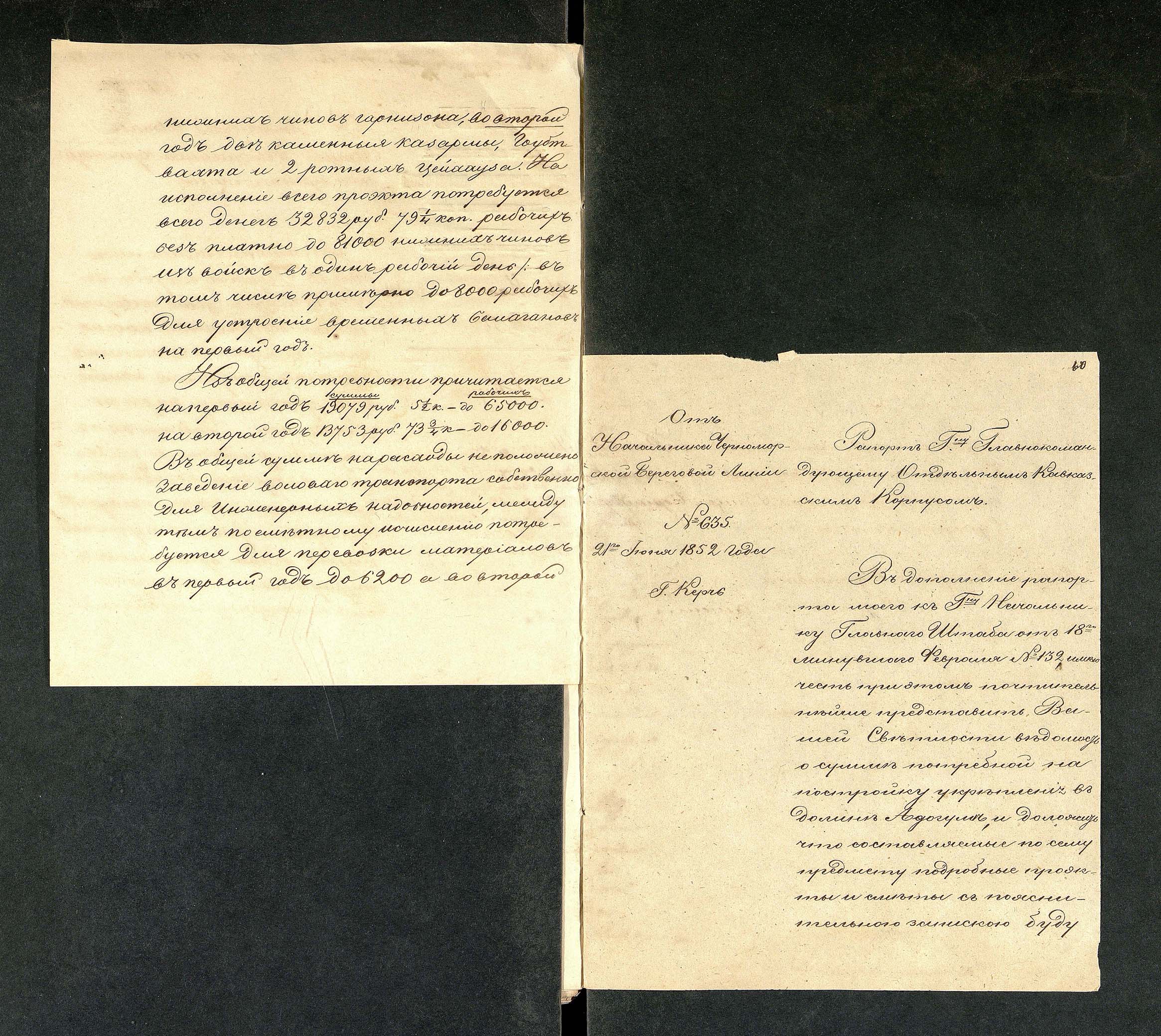 Документы ГКУ КК «Государственный архив Краснодарского края», фонда № 260 «Канцелярии начальника Черноморской береговой линии», опись № 1, оцифрованное дело № 17 «О занятии устья реки Цемеса в Суджукской бухте под устройство там Адмиралтейства и пристани», за 1838-1844 гг. — Письмо