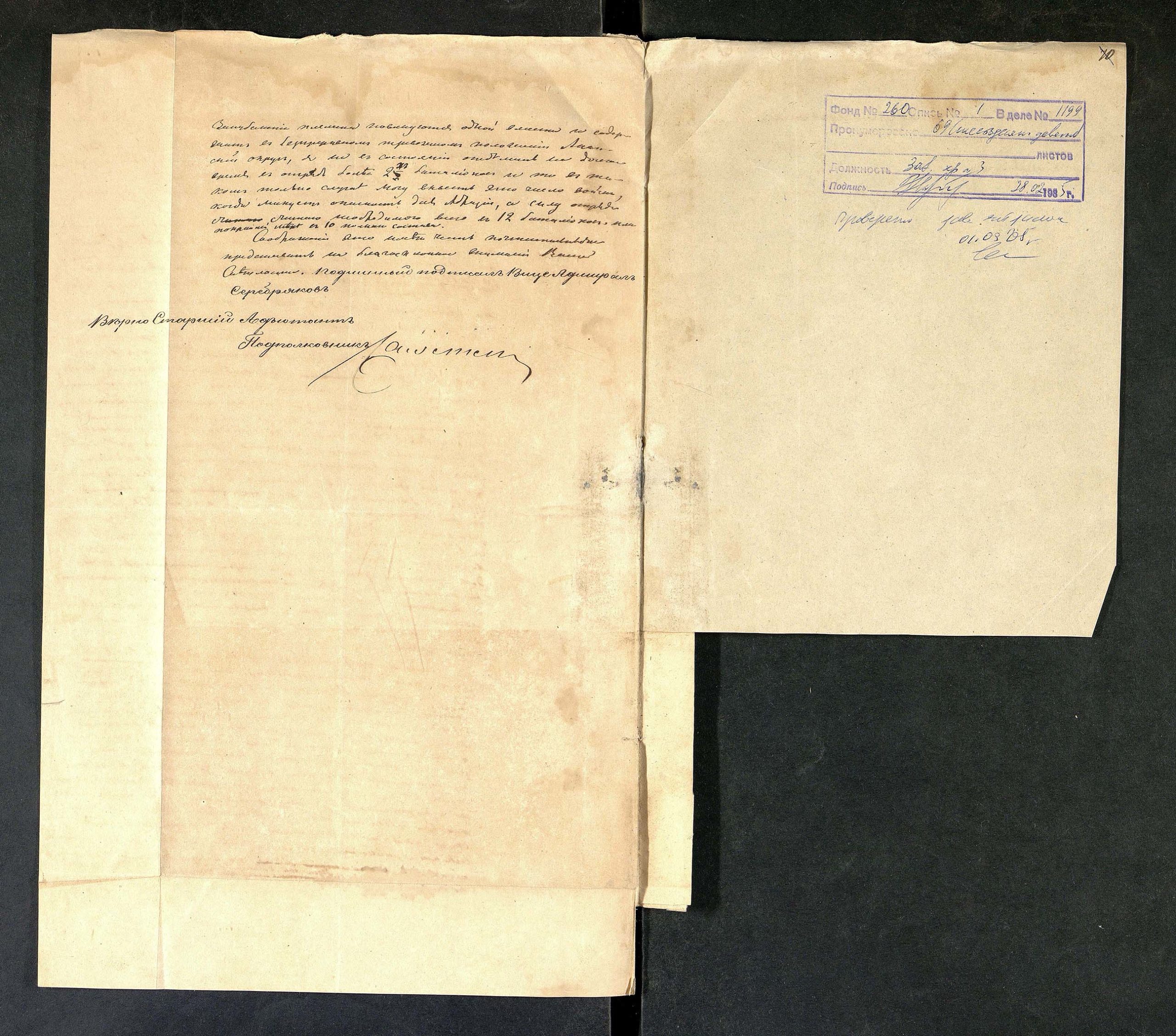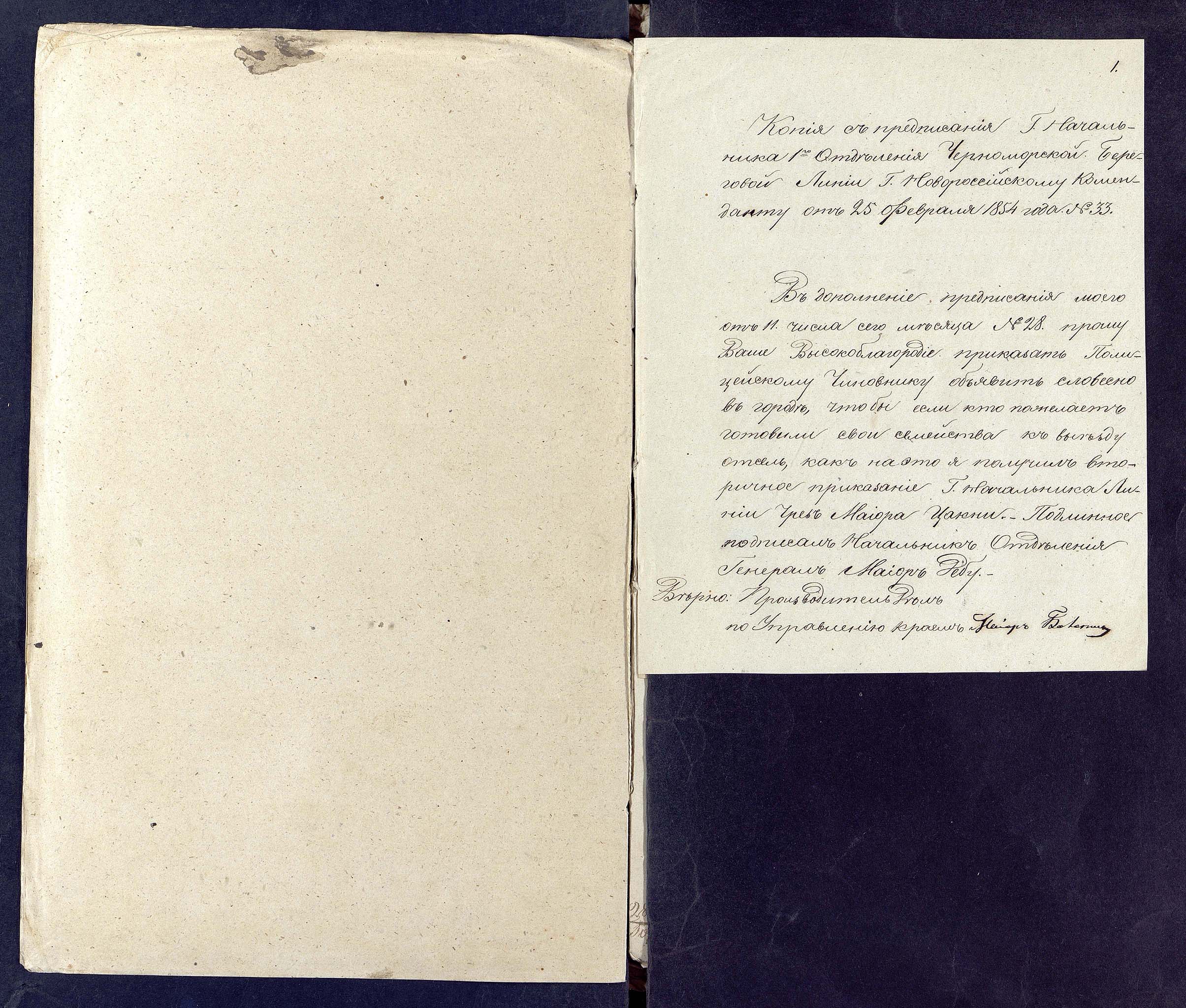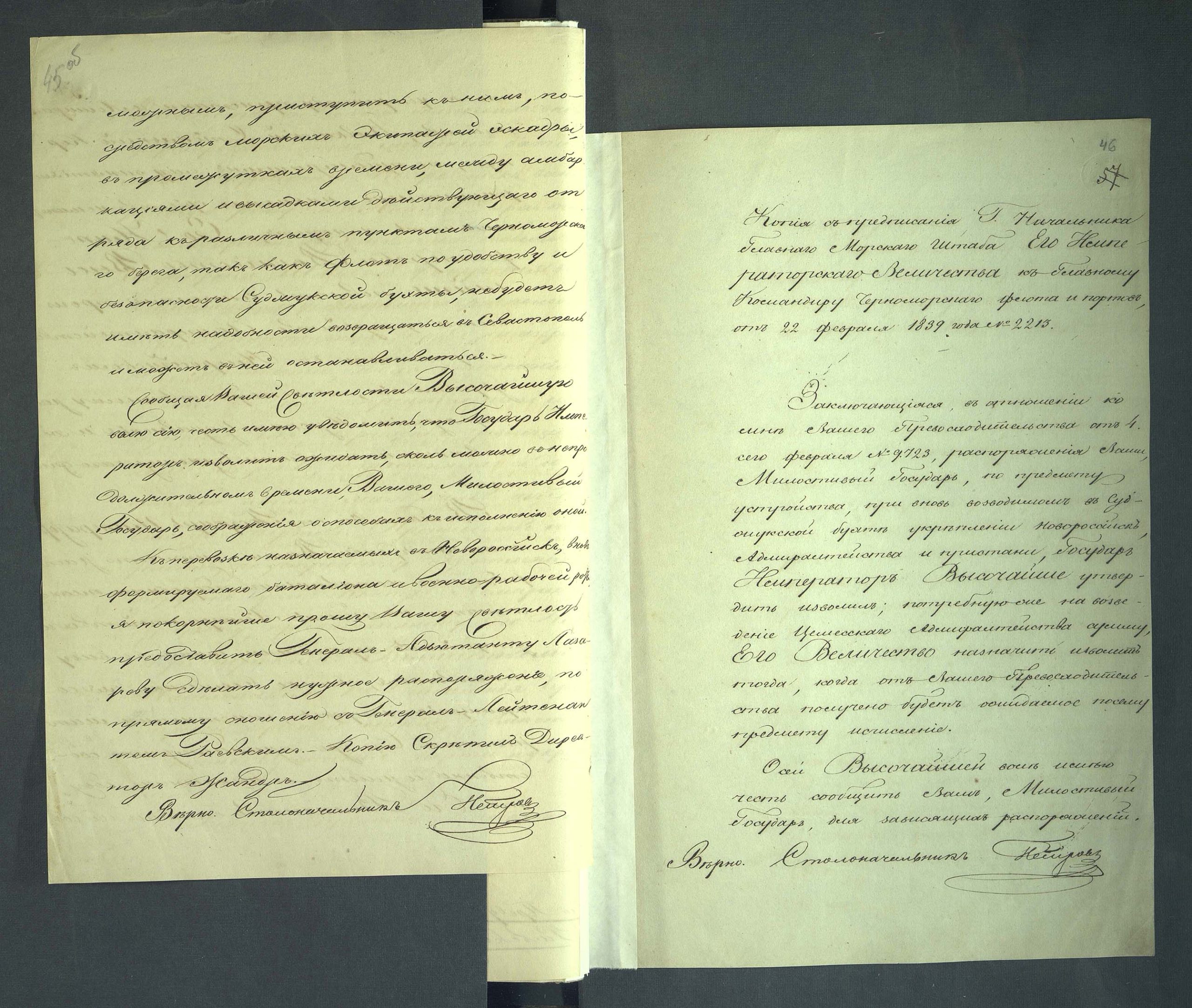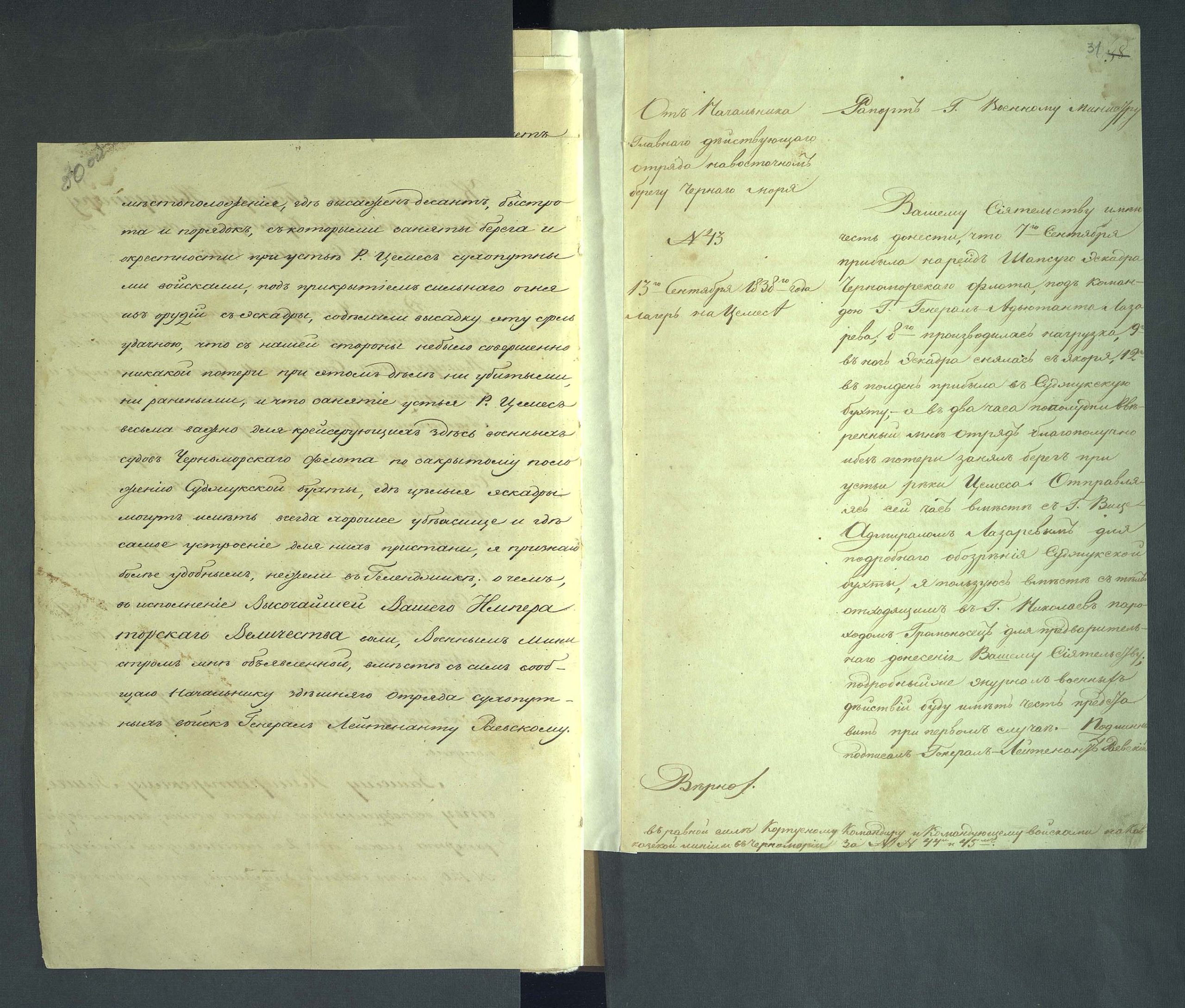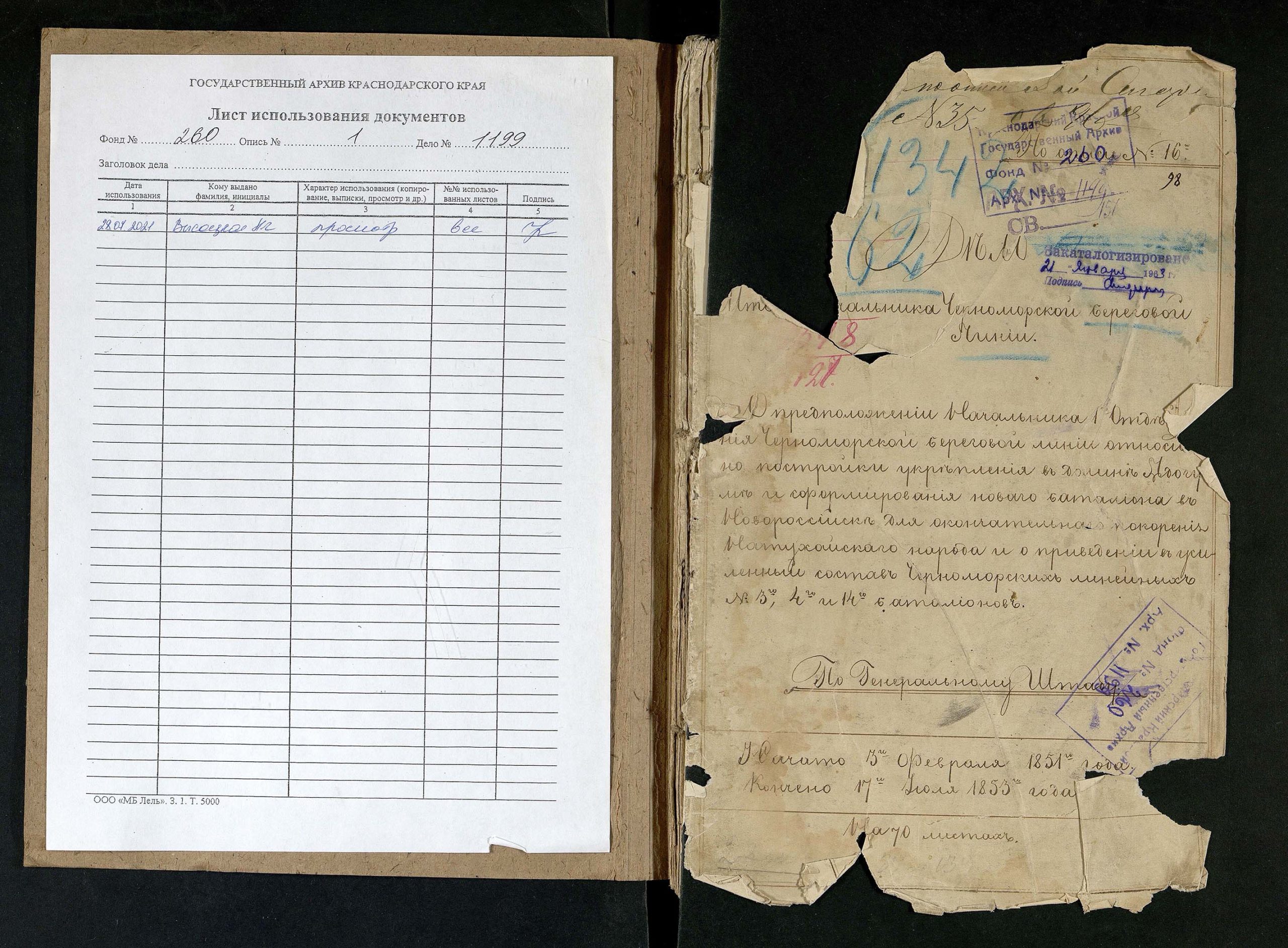 Документы ГКУ КК «Государственный архив Краснодарского края», фонда № 260 «Канцелярии начальника Черноморской береговой линии», опись № 1, оцифрованное дело № 17 «О занятии устья реки Цемеса в Суджукской бухте под устройство там Адмиралтейства и пристани», за 1838-1844 гг. — Письмо